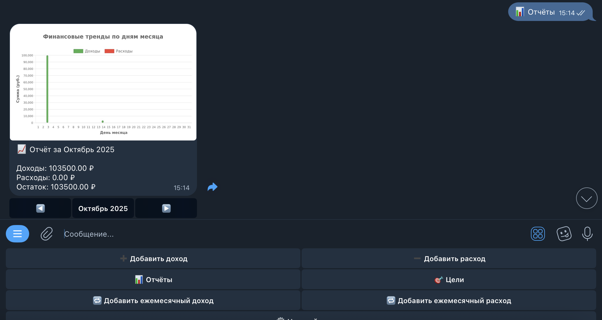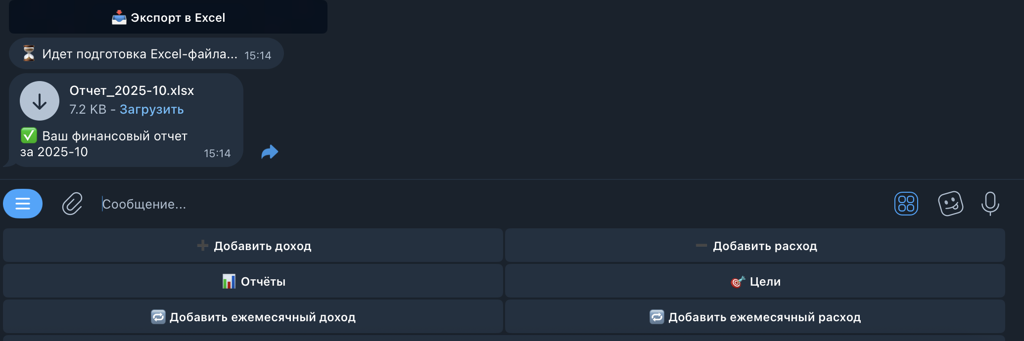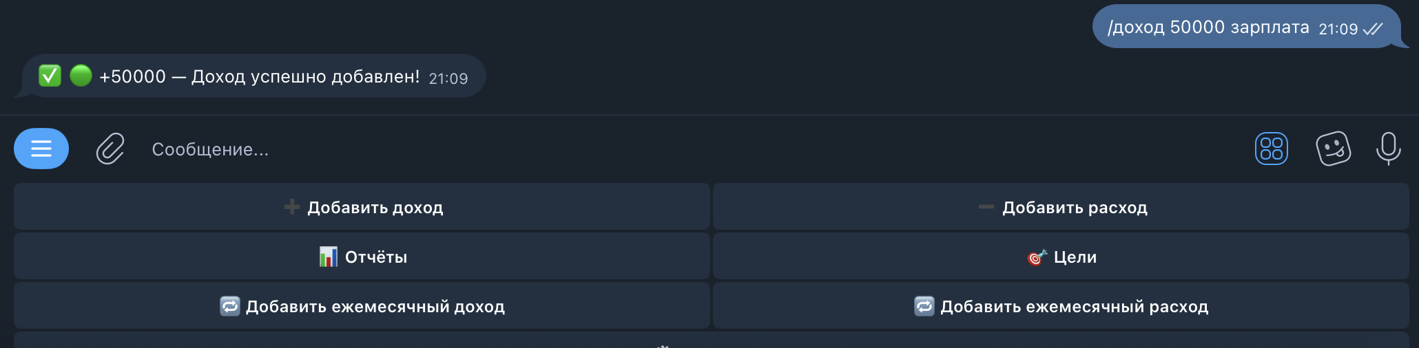 Добавляйте доходы и расходы за секунды — прямо в чате.