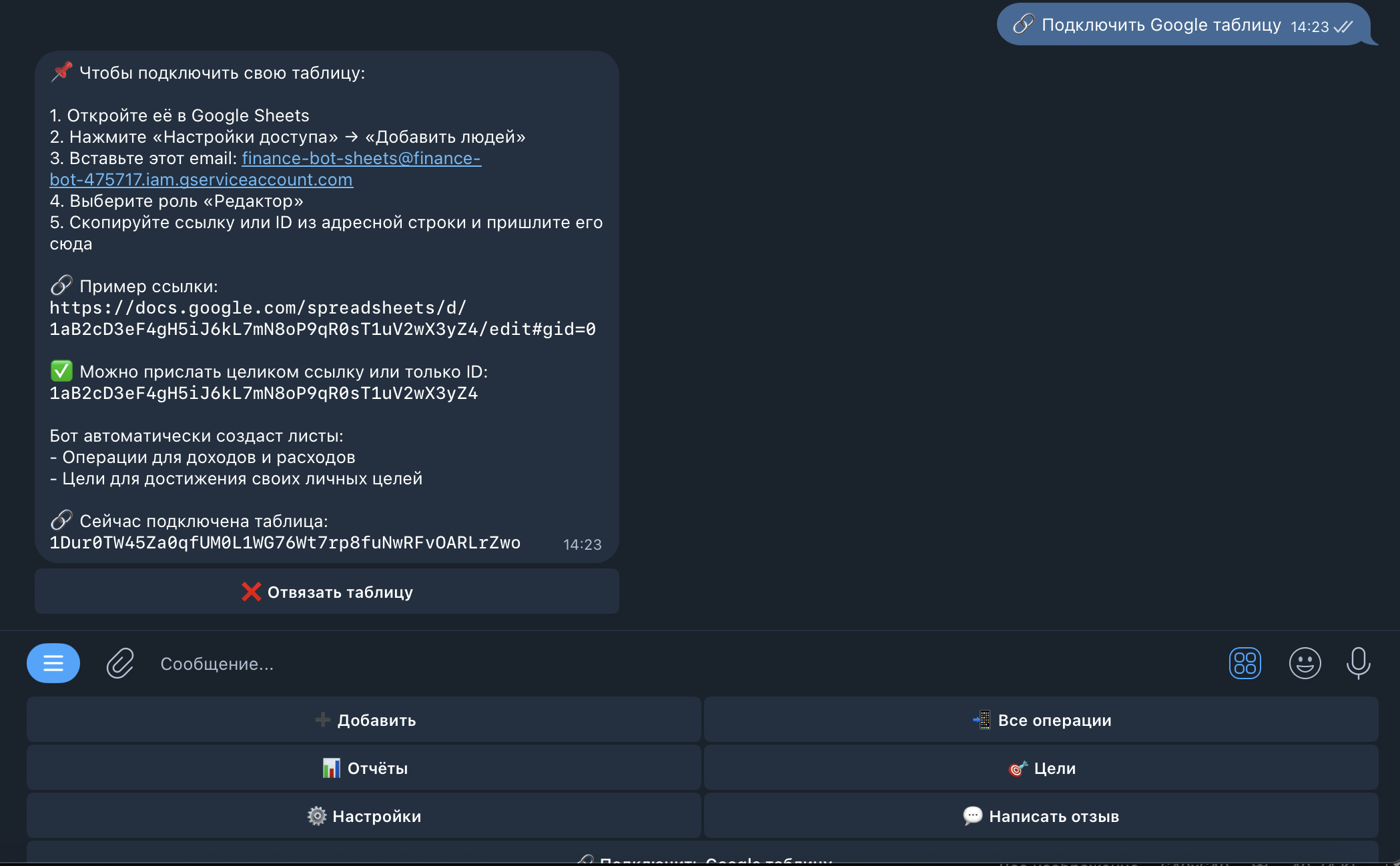 Бот для учёта доходов и расходов с интеграцией Google Sheets